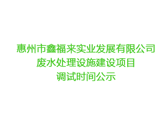 惠州市鑫福來實業(yè)發(fā)展有限公司 廢水處理設施建設項目調試時間公示